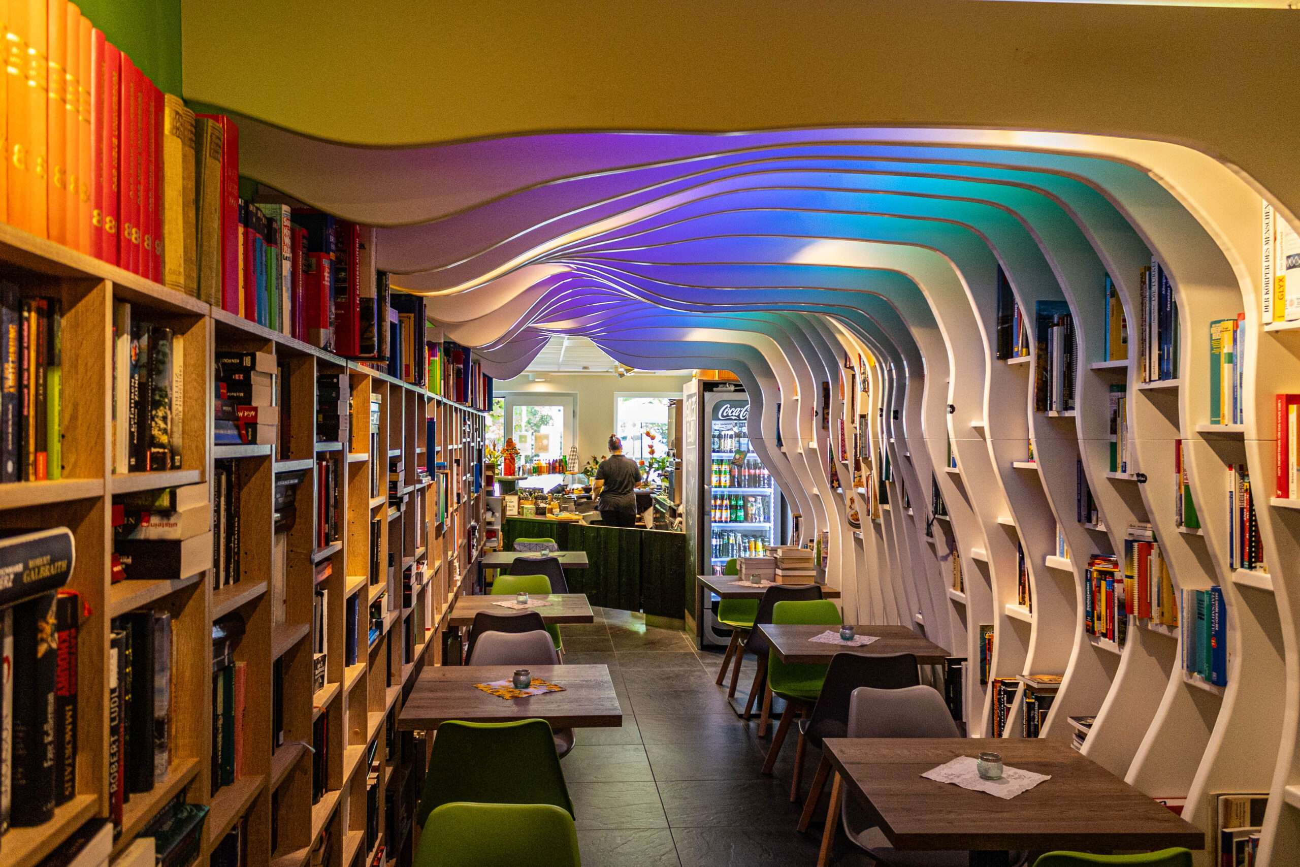 Bücher-Café und Shop für Energie und Impulse im Herzen der Stadt! Gegen eine Spende kannst du auch die Bücher mitnehmen.